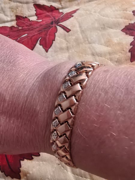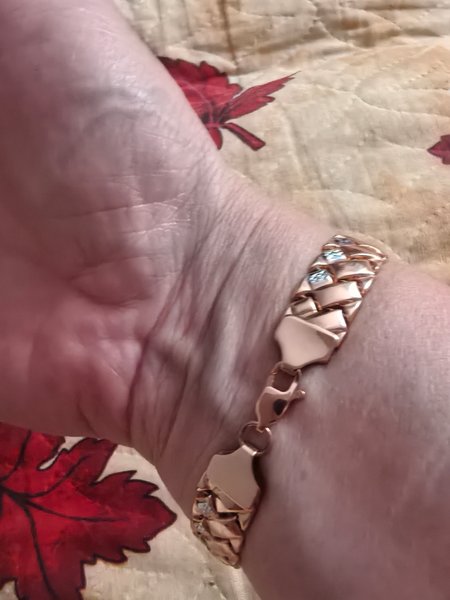 Мощный, широкий, но смотрится не тяжело, аккуратно, красиво, переливается, играет на свету Я очень довольна, рекомендую
