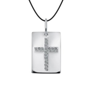 Фото «Серебряная подвеска Крест с фианитами и родированием»