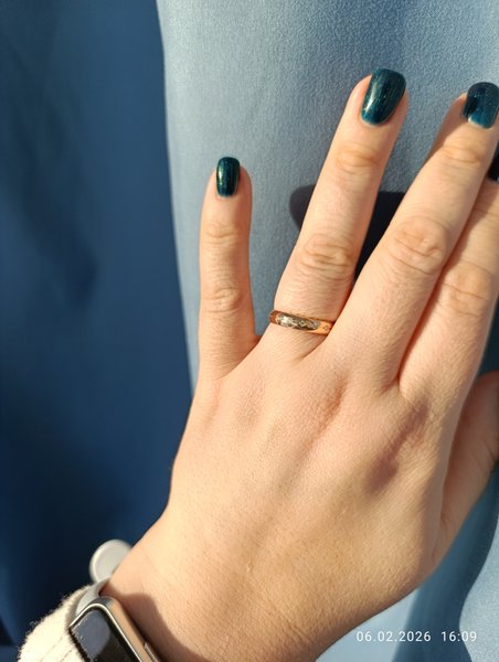 Комфортная посадка, красивое, камушки выглядят достаточно гармонично (не мелкие и не громоздкие), смотрится аккуратно. Не выявлено Мне очень нравится! Хотела классику, но с бриллиантами - идеальный вариант!