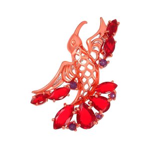 Брошь Птица из серебра с самоцветами и керамическим покрытием