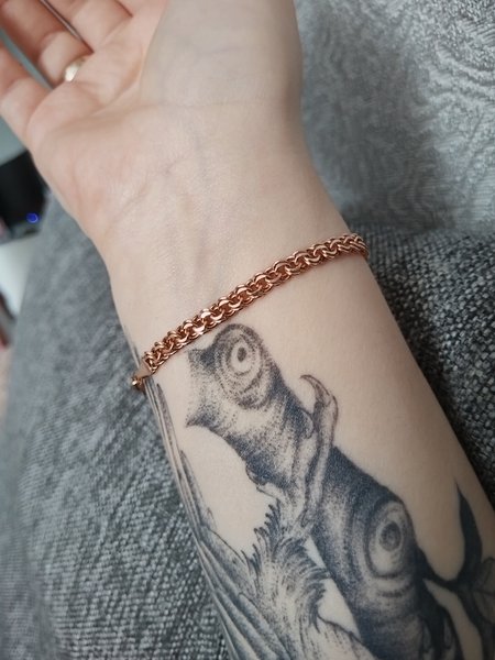 Очень рада, что можно его регулировать. Очень лёгкий и не раздражает Очень красивый браслет и очень удобный в носке.