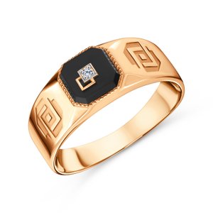 Золотая печатка с агатом и бриллиантом