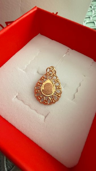 Подвеска красивая,изящная. Думала,что будет совсем маленькая,но нет она не маленькая, смотрится достойно. Не заметила.