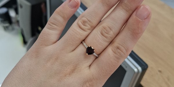 Красивое нежное колечко. Дочке понравилось, подбирали под сережки. Сережки приобрели сегодня также в Вашем магазине (по другому адресу) Спасибо! Ребёнок (16 лет))) доволен, а это самое главное!) В онлайн приложении очень большой ассортимент ювелирных изделий на любой вкус и 👛 Искали сережки и колечко именно с гранатом, и только в этом магазине оказался такой большой выбор изделий с этим камнем. Приложение очень удобное, можно сразу посмотреть в каких магазинах что в наличии, и если нет, то заказать. Спасибо ещё раз!