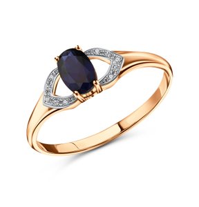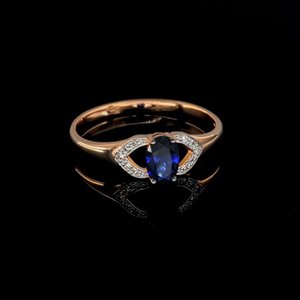 Золотое кольцо с сапфиром выращенным и бриллиантами