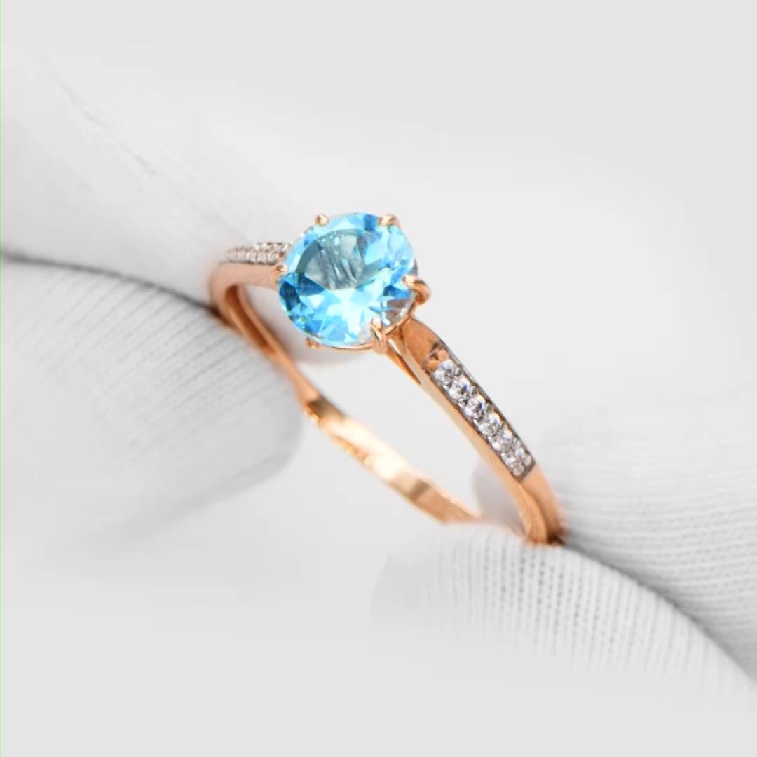 Фото «Золотое кольцо с топазом Sky и фианитами»