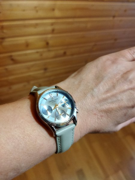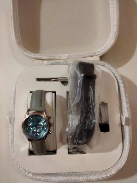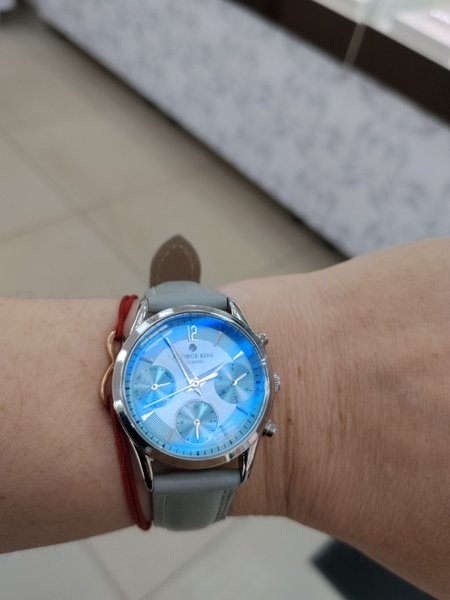 Часы стильные,красивые,качественные.Есть сменный ремешок в комплекте.Стекло топазового цвета,очень изысканно.Ремешок светло-серый.Весной и летом под джинсовую одежду-супер! Не выявлено