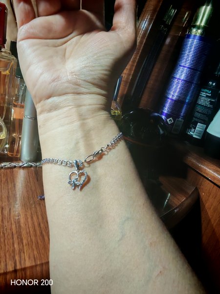 Очень милая и нежная подвеска. Выбирала специально маленькую, для тонкого браслета. Камешки сверкают, все на месте, цена очень радует.