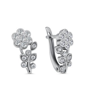 Фото «Серебряные серьги Цветок с фианитами и родированием»