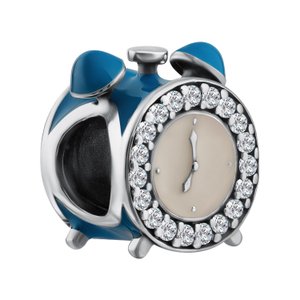 Фото «Серебряный шарм Будильник с эмалью и фианитами с чернением»
