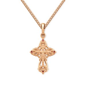 Золотой православный крест с рубинами выращенными