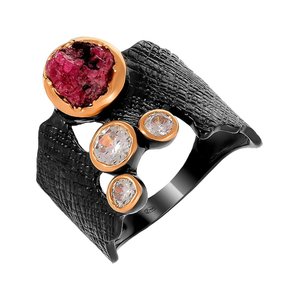 Серебряное кольцо с рубином и фианитами