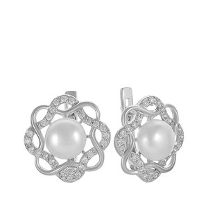 Серьги из серебра с жемчугом и фианитами