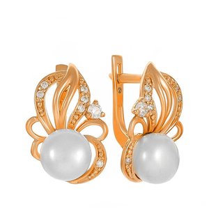 Серебряные серьги с жемчугом и фианитами