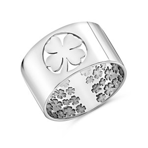 Серебряное кольцо Клевер с родированием