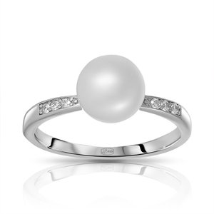 Серебряное кольцо с жемчугом и фианитами