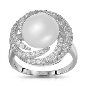 Серебряное кольцо с жемчугом и фианитами