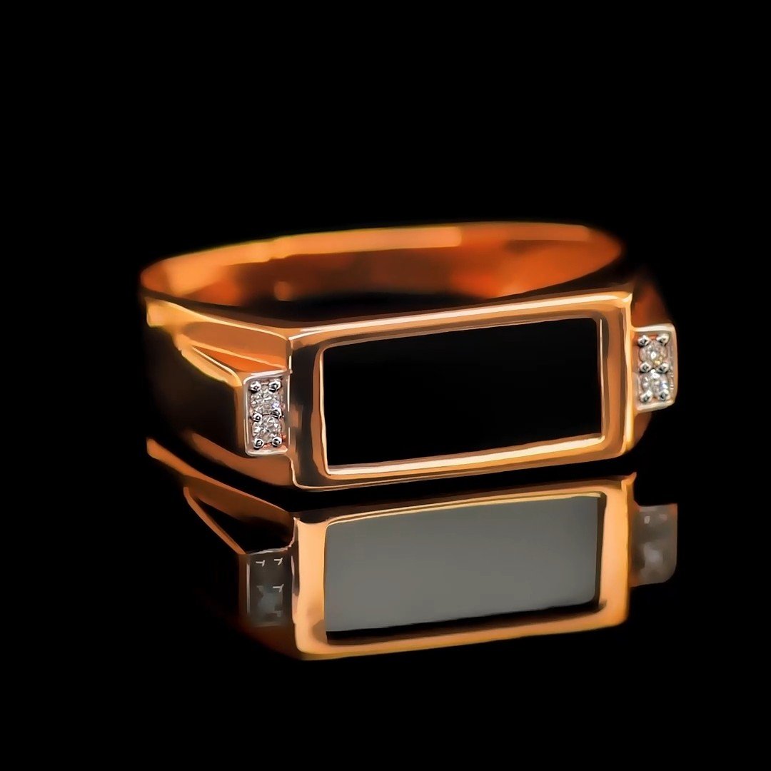 Золотая печатка с имитацией агата и бриллиантами