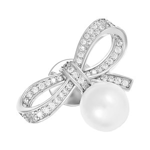 Серебряная брошь с жемчугом и фианитами