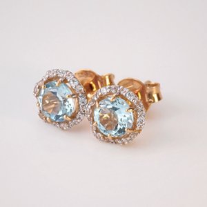 Золотые серьги-пусеты с топазами Sky и фианитами выглядят дорого и изысканно, но при этом остаются доступными. Аккуратные и лёгкие, они красиво сидят на ушках и надёжно фиксируются. Можно сочетать с кольцом из комплекта.