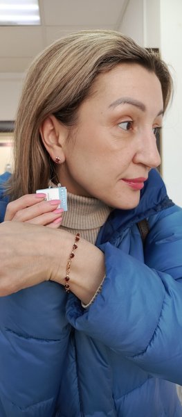 Качественно сделаны, для сравнения смотрела подобные 585 пробы в другом магазине, но там очень топорная работа была. Камень чуть светлее, чем камень моего кольца и кулона, но так как серьги у лица, то это даже скорее плюс - выглядят по-ярче, тем самым освежает внешность. Классные серьги, красивый дизайн (с гранатом практически все модели уже устаревшие), подойдут на любой возраст.