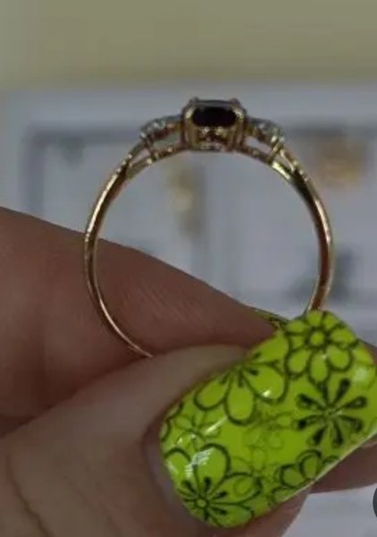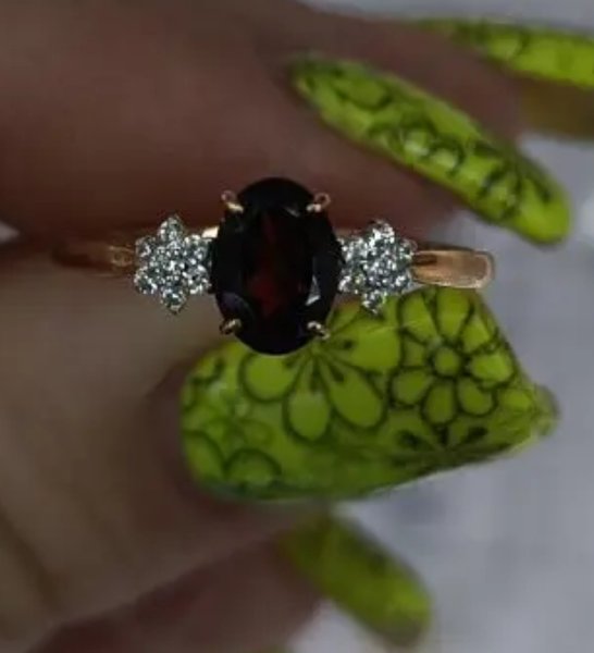 Милое колечко, гранат темный, прямо как спелое зернышко граната. Рекомендую к покупке, не пожалеете Нет минусов Когда то давно я потеряла похожее колечко так же по бокам цветочки из фианитов только камень гранат был прямоугольной формы. Сделайте пожалуйста, куплю с удовротствием.