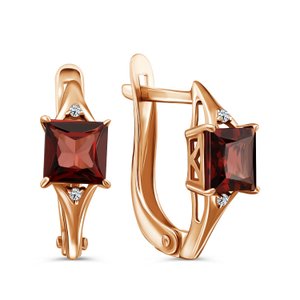 Золотые серьги с гранатом и фианитами
