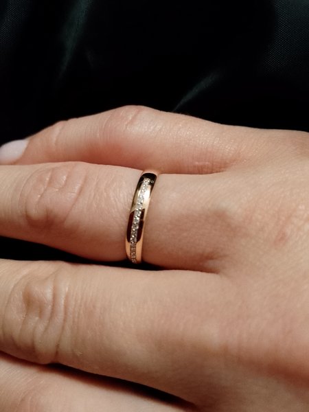 До чего же милое, нежное колечко! Я стала его счастливой обладательницей! Обновили обручальные кольца с мужем в честь нашей 20-летней годовщины со дня свадьбы. Супруг приобрёл брутальное кольцо, а я это. Оба безумно рады! Нет