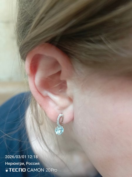 Очень красивые серьги. Брали специально с топазами, дочери поб голубые глаза. На фото камень смотрится ярче, чем в живую.