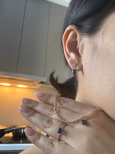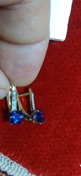 Очень красивые серьги, заказывала комплект, всё соответствует. Камень ярко синий, квадратный, именно, то что хотелось! Спасибо 585, Вам удалось меня порадовать!