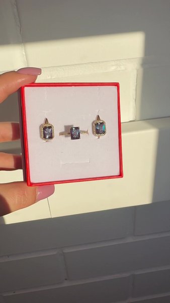 Очень интересно и красиво переливается на солнце.покупали в магазине сережки, муж решил больше порадовать и купил к ним колечко