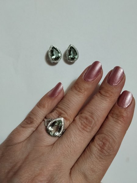 Шикарные, цвет аметиста необычный. Вначале купила кольцо, а сейчас серьги