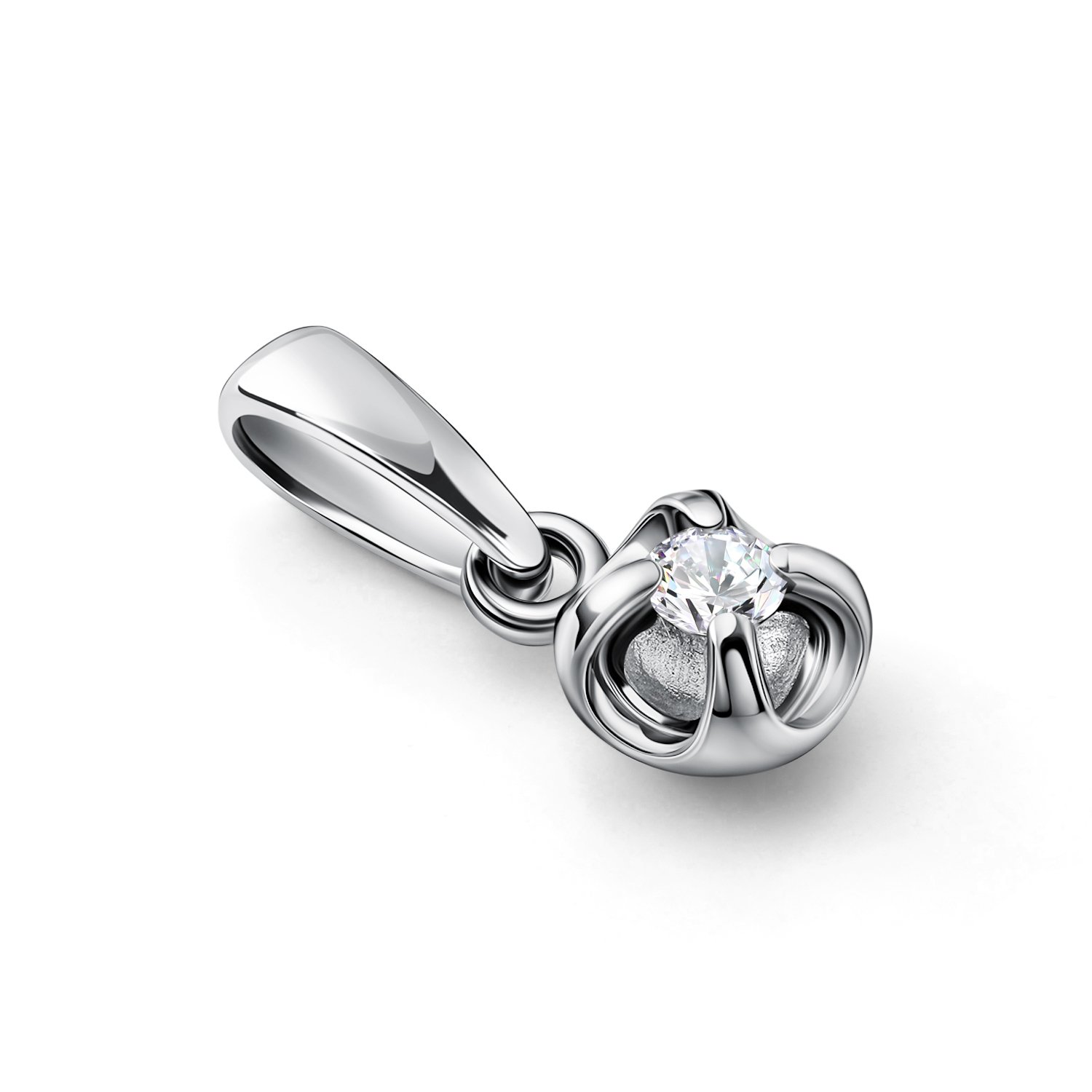 Подвеска из белого золота с бриллиантом понравится тем, кто ценит утончённую простоту. Чистые линии и изящная коронка подчёркивают игру света на камне, придавая образу лёгкость и благородство. Универсальный дизайн украшения легко впишется в повседневный образ и добавит изысканности вечернему, особенно эффектно в комплекте с кольцом и серьгами из этой серии.