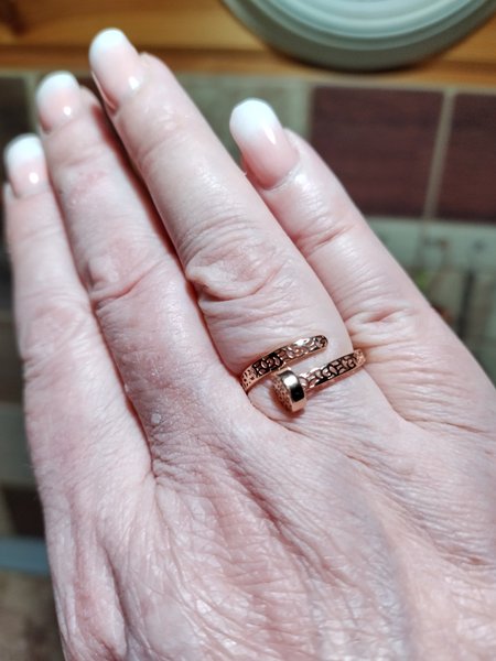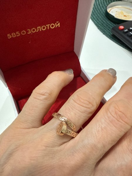 💯💯💣💣💣 Нет Колечко, просто ,огонь, смотрится не привычно, стиль оригинальный, необычный, как увидела его, просто сразу влюбилась, и ждала доставкой в магазин, потому что, не было моего размера, 😌 довольна 😌 😌 нет предела,,,,))))), отдельное спасибо, за вежливое обслуживание продавцу)))))