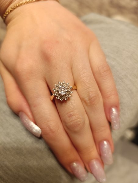 Очень красивое кольцо, нежное. Купила данное кольцо к сережкам, получился красивый набор. Спасибо производителю и 585 золотому за такую красоту.