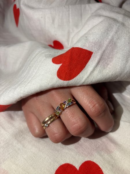 Золотое кольцо с цитрином, хризолитами, топазами, аметистами и фианитами
