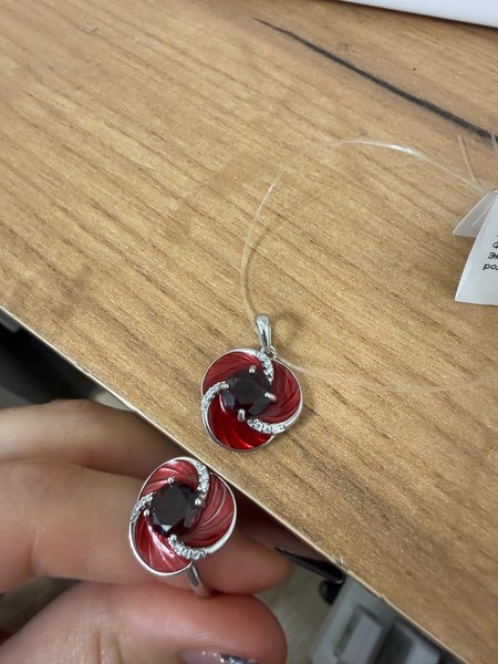 Обожаю украшения с эмалью. И не сильно крупная и не сильно мелкая подвеска и кольцо Цвет эмали подвески отличается от кольца, более насыщенный красный, у кольца больше с розова. И так и так красиво