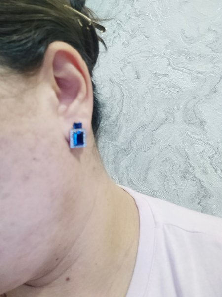 Золотые серьги с сапфирами выращенными и бриллиантами