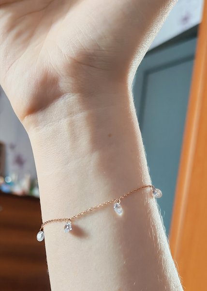 браслет шикарный, влюбилась в него с первого взгляда. когда добавляла в корзину, стоил 8000, за пару месяцев подорожал до 10900, очень расстроолась. сейчас снова 7990, решила взять. очень красивый, нежный, аккуратный. переживаю, что порвётся так как очень тоненький, но благодаря этому выглядит элегантно. берите не раздумывая, просто прелесть!