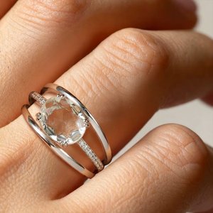 Серебряное кольцо с имитацией кварца и фианитами