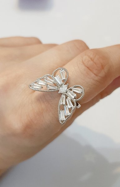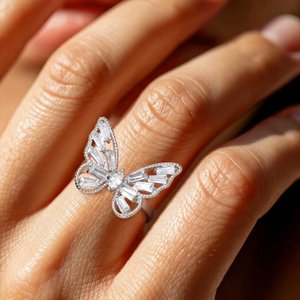 Представьте: бабочка, сотканная из серебра и света, приземлилась на ваш палец! Серебряная основа и прозрачные фианиты подчёркивают лёгкость и воздушность образа. Кольцо отлично подойдёт для тех, кто ценит моду и индивидуальность. В комплекте с серьгами и брошью аналогичного дизайна это кольцо станет жемчужиной вашей коллекции.