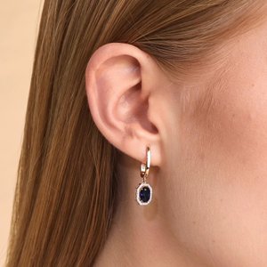 Золотые серьги с сапфирами выращенными и бриллиантами