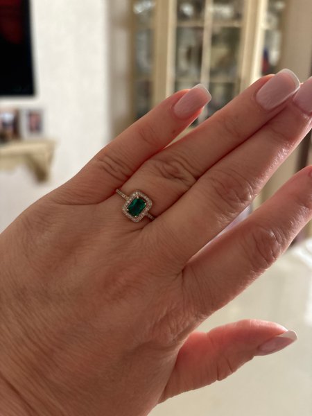Золотое кольцо с изумрудом выращенным и бриллиантами