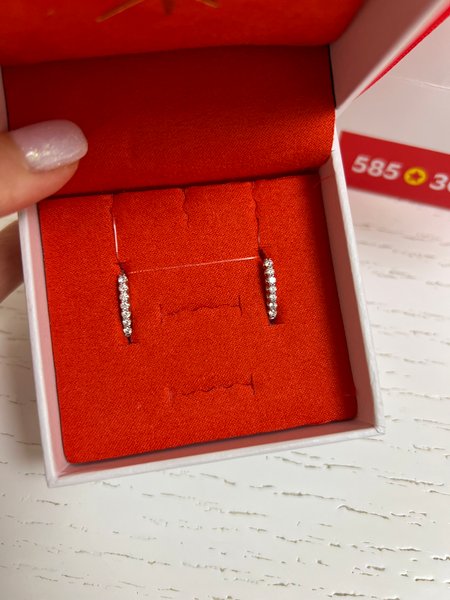 Красиво смотрятся, бриллиантики не малышки, сверкают Люблю серьги-дорожки. Выглядят достойно. Очень рада такому прекрасному подарку на Новый год!