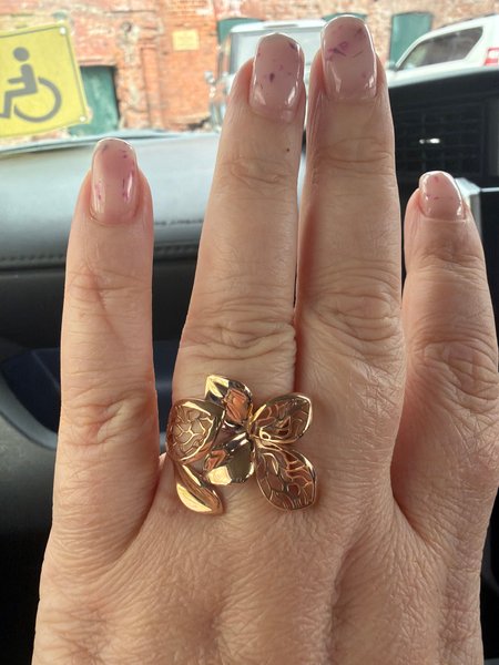 Потрясающее колечко. Удобное, оригинальное, а самое важное оно не цепляется. Я очень рада покупке.