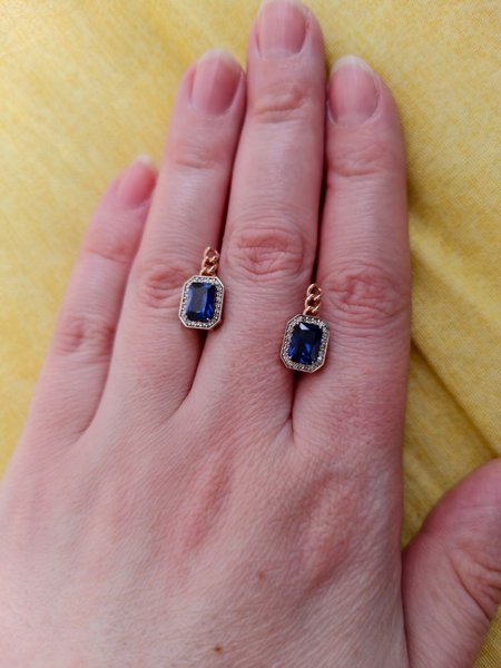 Золотые серьги с сапфирами выращенными и бриллиантами