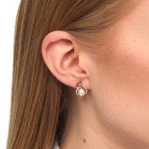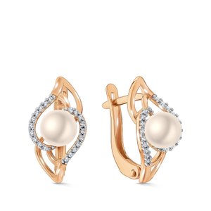 Золотые серьги с жемчугом и фианитами