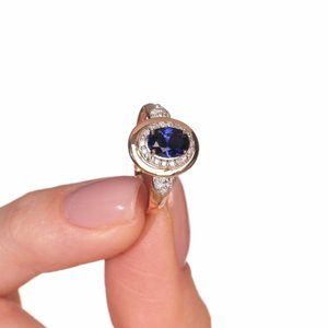 Золотое кольцо с сапфиром выращенным и бриллиантами