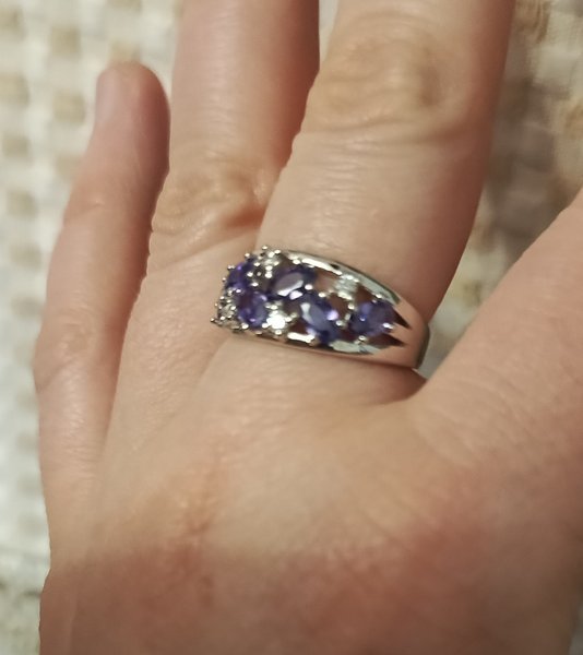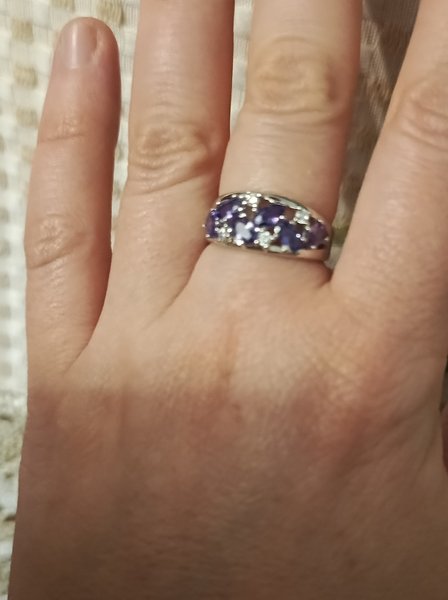 Кольцо очень красивое, смотрится благородно, не массивно. Цвет камня приятный, довольно насыщенный фиолетовый. Покупкой довольна.
