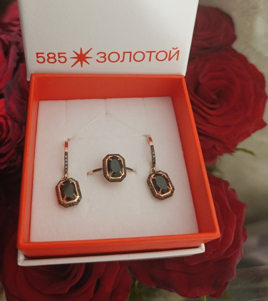 Золотое кольцо с агатом и черными бриллиантами